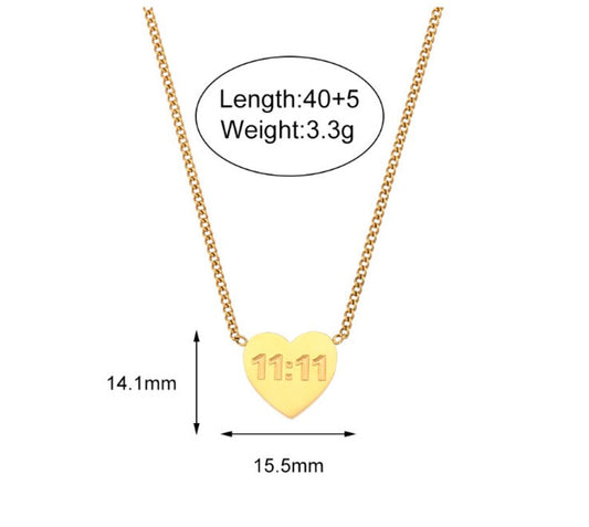 Elevate with Our Gold "11:11" 18k Floating Heart Necklace