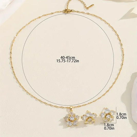 Elegant Flower Shape Inlaid White Zircon Earrings & Necklace Jewelry Set in Luxurious 18K Gold *** limited edition ***