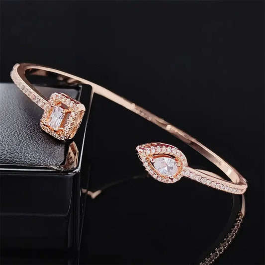 Adjustable Gold Cuff Bracelet Adorned with AAA CZ Stones - Designed for Women