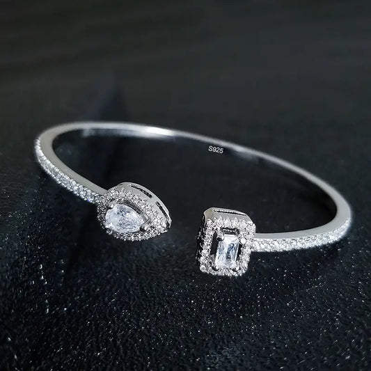 Adjustable Cuff Bracelet in Silver, Adorned with AAA CZ Stones - Perfect for Women