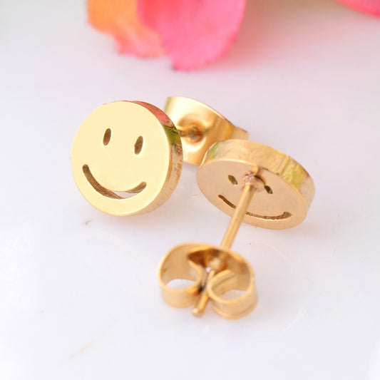 Radiate Happiness with Our Gold Happy Face Stud Earrings – Unisex, Tarnish & Waterproof