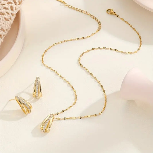 Radiate Timeless Elegance with Our 18KGold CZ Teardrop Earring and Necklace Set