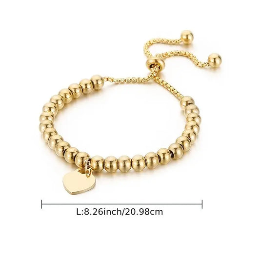Radiate Love and Elegance with Our Titanium Steel Love Heart Pendant 18K Gold-Plated Bracelet - A Symbol of Timeless Affection and Style, Available in Gold with a Silver Option