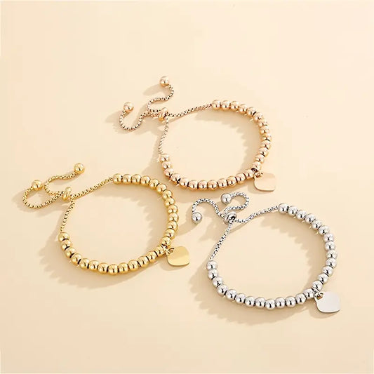 Our Titanium Steel Love Heart Pendant 18K Gold-Plated Bracelet - A Symbol of Love and Style for Women, Now in Silver with an Available Gold Option