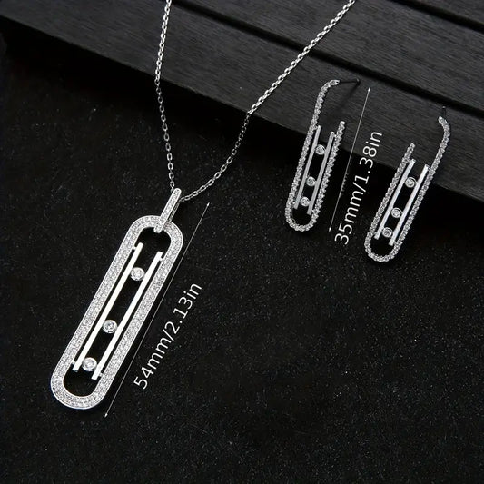 Radiant 3-Piece Paperclip Design AAA CZ Necklace and Earring Set